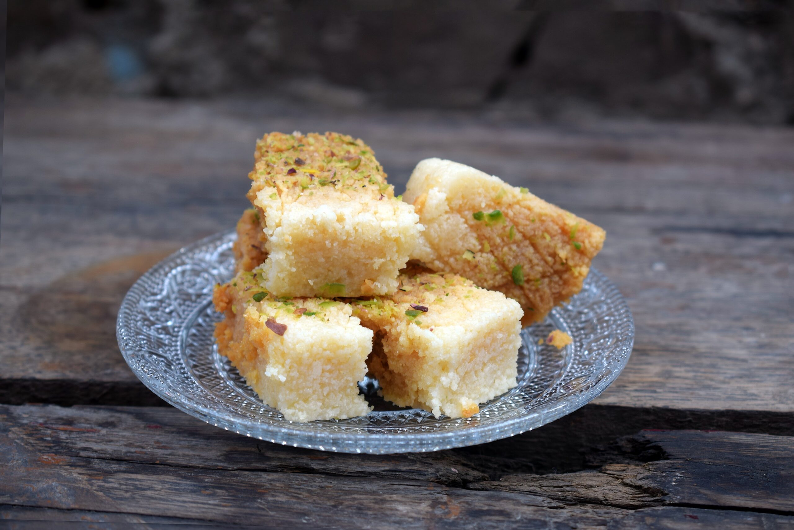 Milk Cake is a traditional Indian sweet made by slowly simmering milk until it thickens, caramelizes, and develops its rich, two-tone color. Its unique texture—firm on the outside and soft, moist, and slightly grainy inside—comes from the natural settling of milk solids during the cooking process.